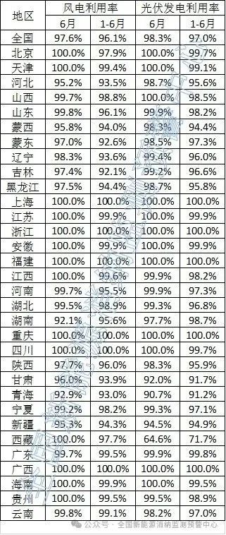 7月31日,全国新能源消纳监测预警中心发布《2024年6月全国新能源并网消纳情况》。数据显示,6月,全国光伏发电利用率为98.3%。2024年1-6月,全国光伏发电利用率为97%。其中,西藏6月光伏发电利用率仅有64.6%,全国。其次是青海、甘肃利用率也仅有90%、92%。新疆94.5%、湖南97.7%,其余省市地区都达95%以上。此外,光伏发电利用率达到有山西、北京、天津、上海、江苏、浙江、安徽、福建、重庆、四川、广西、海南十二个省份。根据《能源局关于2021年风电、光伏发电开发建设有关事项的通知》(国能发新能〔2021〕25号),为引导新能源理性投资、有序建设,现将2024年6月各省级区域新能源并网消纳情况公布如下。